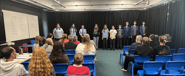 After school on Wednesday 8 October, we welcomed the parents/carers and family members of Year 10 Drama students to watch them perform their monologues (solo pieces). The students put on a fantastic show which highlighted their hard work, independent learning and acting skills. The pieces, written for them individually, showcased a wide range of characters who had each been affected by a central catastrophe.
